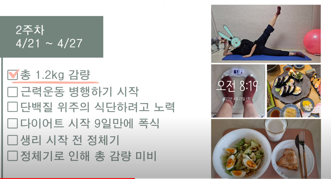 4주차 2.3kg 감량, 대단하다.