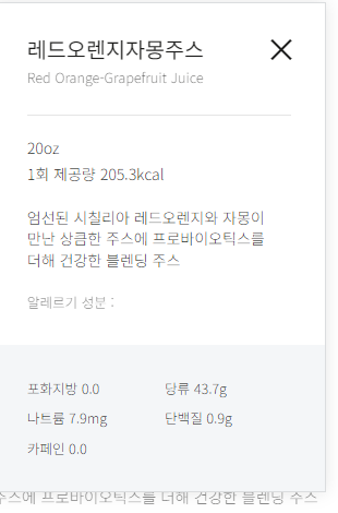 제가 즐겨 마시는 분다버그 핑크자몽도 엄청난 당류가 들어있네요. 42.2g입니다. 음료는 끽하면 40g이 넘는 것 같네요.